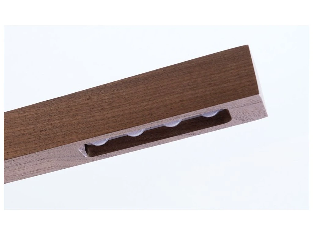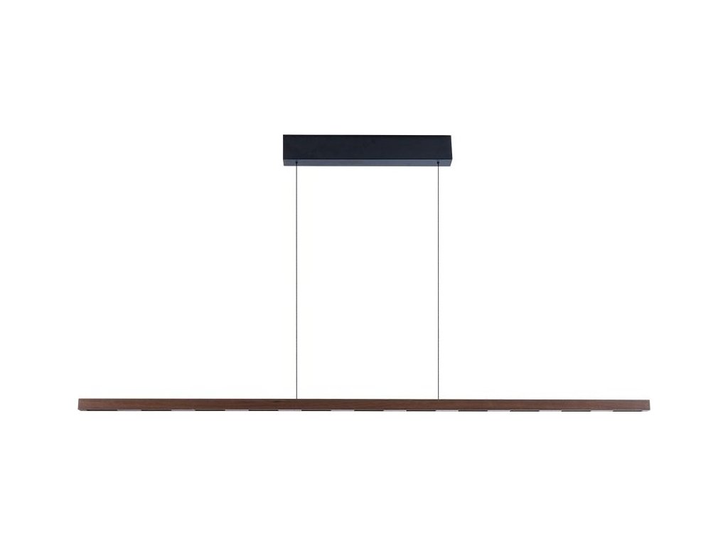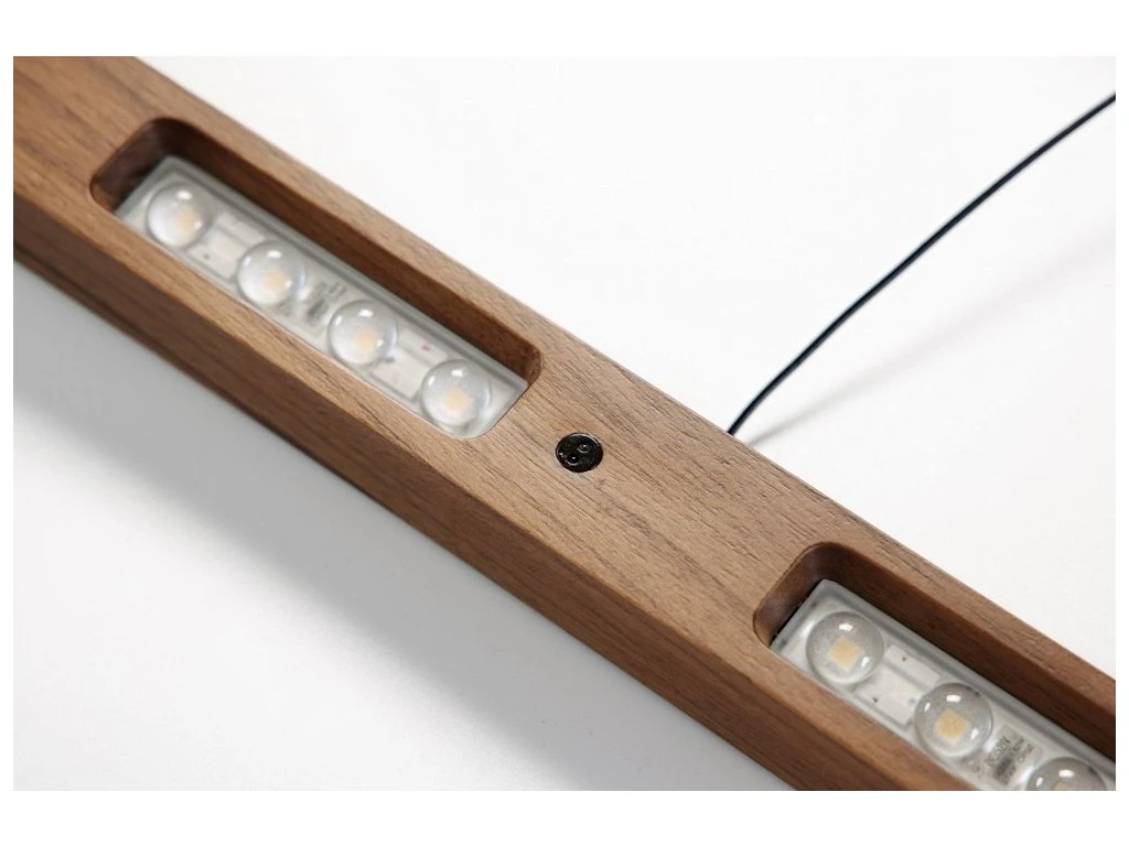 Designové závěsné LED svítidlo kombinující přírodní ořechové dřevo s moderní technologií senzorového ovládání.