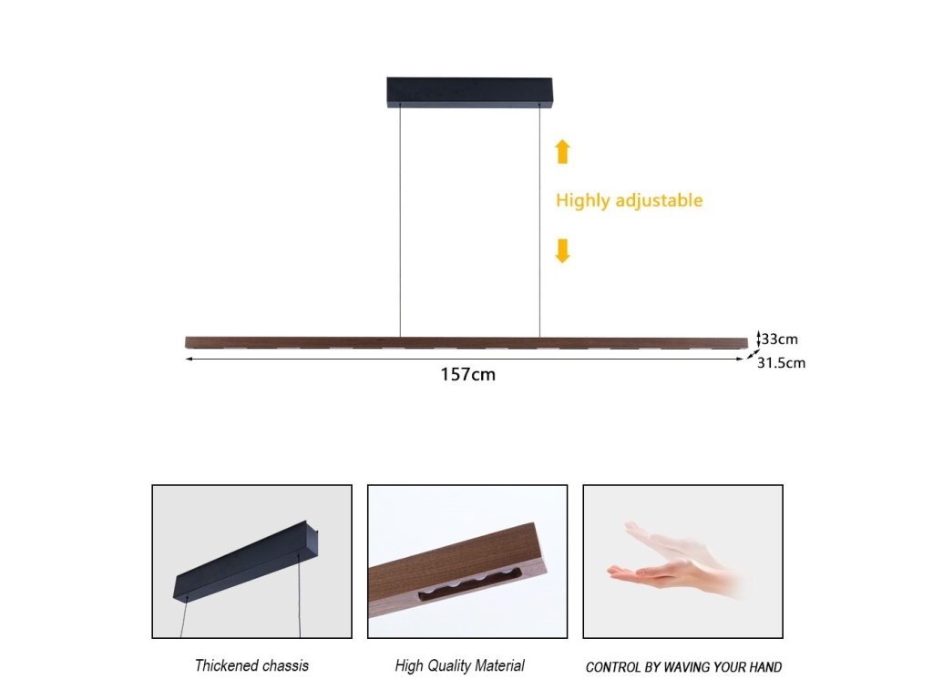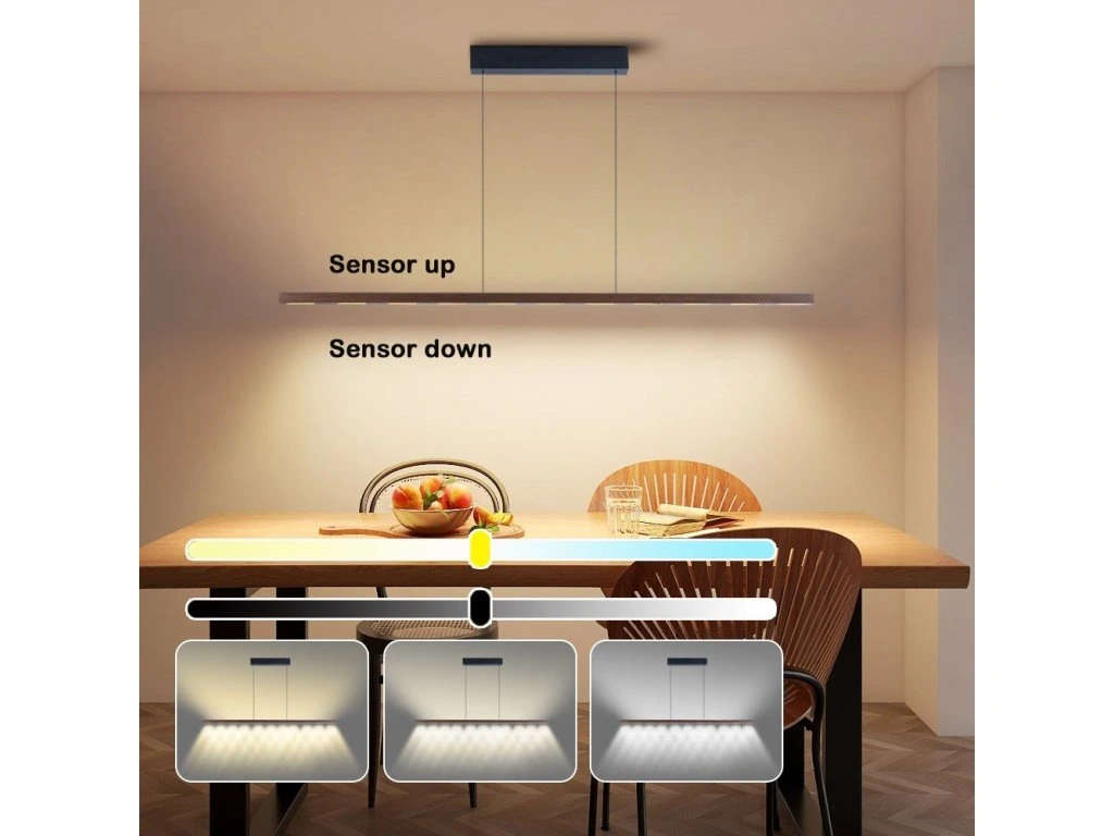 Svítidlo z řady MADEIRA Wood-Line představuje harmonické spojení přírodních materiálů a pokročilých funkcí. S délkou 157 cm a lineárním designem vytváří elegantní osvětlení pro moderní interiéry. Unikátní senzorové ovládání mávnutím ruky umožňuje pohodlné zapínání, vypínání a stmívání bez doteku.