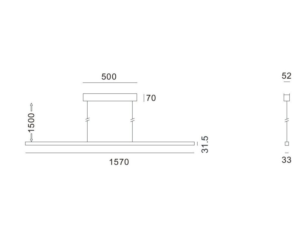 Rozměry: 1570 × 33 × 31 mm