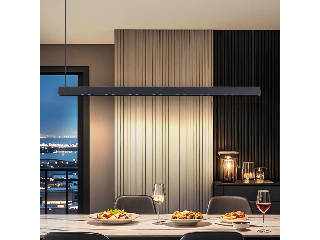 S délkou 122 cm a kombinací přímého a nepřímého osvětlení UP/DOWN vytváří ideální atmosféru v kuchyni, jídelně nebo obývacím pokoji. Černé dřevo s černou montáží dodává interiéru elegantní a moderní vzhled při zachování přírodního charakteru materiálu.