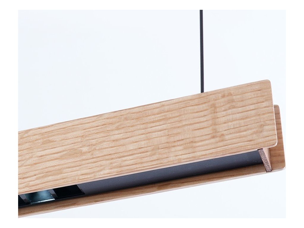 S délkou 122 cm a kombinací přímého a nepřímého osvětlení UP/DOWN vytváří ideální atmosféru v kuchyni, jídelně nebo obývacím pokoji. Dubové dřevo s černou montáží dodává interiéru elegantní a moderní vzhled při zachování přírodního charakteru materiálu.