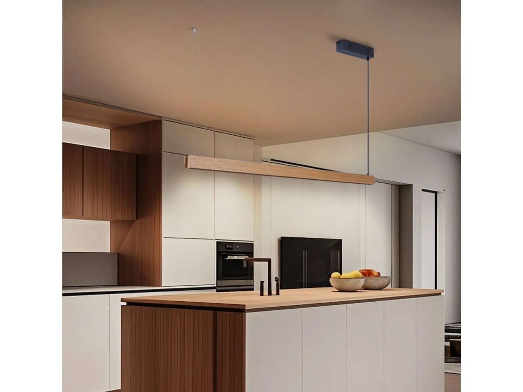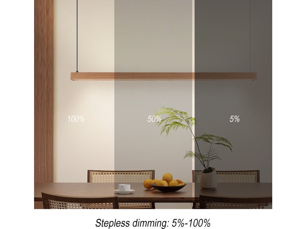 Designové závěsné LED svítidlo kombinující přírodní dřevo s moderní smart technologií.