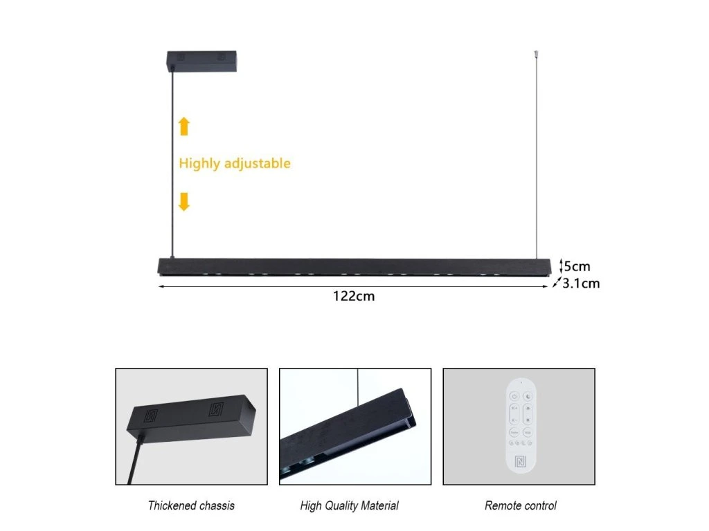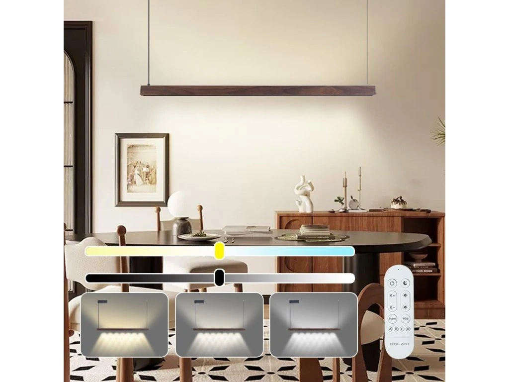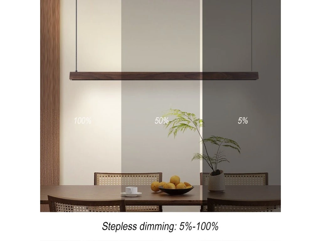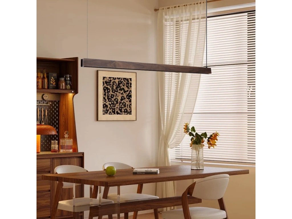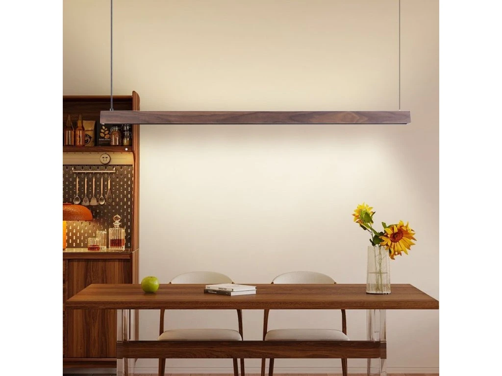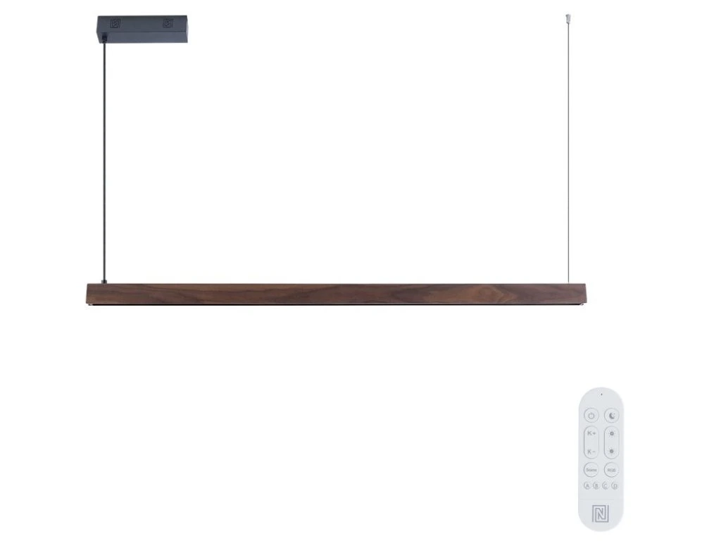 S délkou 122 cm a kombinací přímého a nepřímého osvětlení UP/DOWN vytváří ideální atmosféru v kuchyni, jídelně nebo obývacím pokoji. Ořechové dřevo s černou montáží dodává interiéru elegantní a moderní vzhled při zachování přírodního charakteru materiálu.