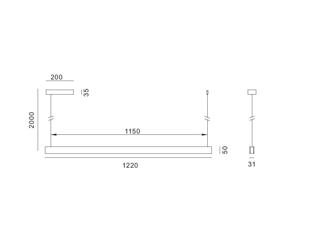 Rozměry: 1220 × 50 × 31 mm