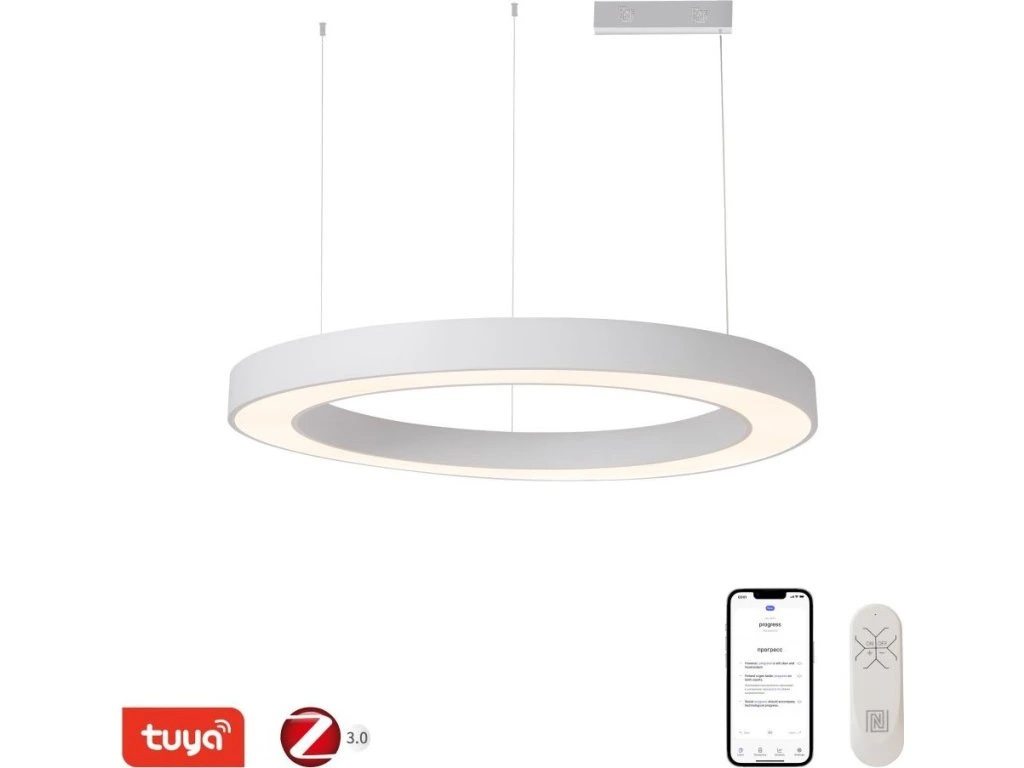 Závěsné LED stropní svítidlo pro chytrou domácnost o průměru 95 cm dotváří moderní a zajímavé interiéry. Svítidlo lze propojit s chytrou bránou IMMAX NEO a ovládat tak celou síť domácích světelných zdrojů skrze dálkový ovladač či aplikaci v mobilním telefonu. Komunikuje na bezdrátovém protokolu Zigbee 3.0, je plně kompatibilní se systémem Philips HUE a podporuje hlasové asistenty Amazon Alexa, Google Assistant a Apple Siri. Dálkový ovladač Zigbee 3.0 je součástí balení.