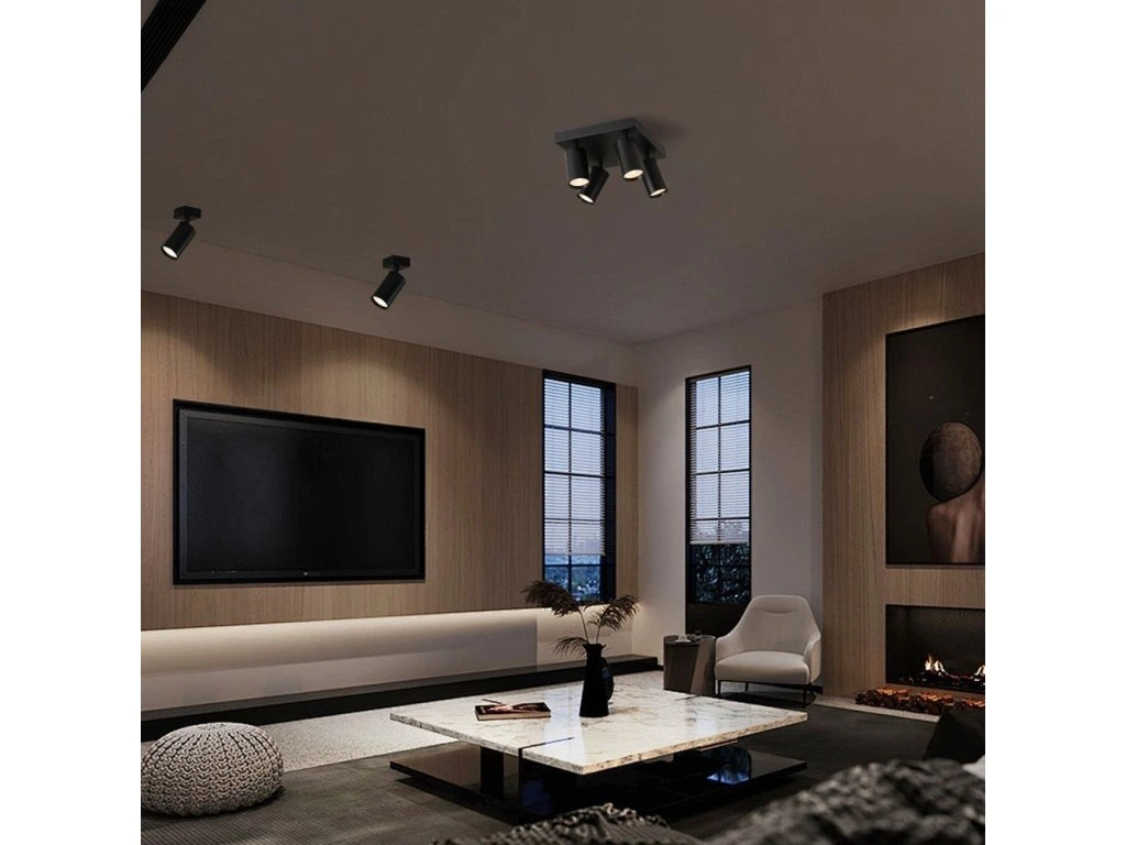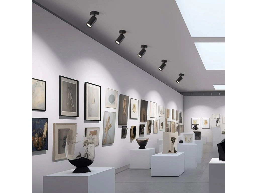 Série bodových svítidel PUNTO představuje kvalitní kovová svítidla v elegantním, matně černém provedení, která jsou ideální volbou pro funkční osvětlení současných interiérů. Svítidla mohou být instalována jako nástěnná i stropní, což zvyšuje jejich flexibilitu a univerzálnost. Směrová hlava je umístěna na základně o velikosti 5 × 5 cm a díky pohyblivému kloubu lze světelný pruh zacílit přesně tam, kde je potřeba. Osazeno je paticí GU10 pro instalaci žárovky o max. příkonu 9 W. Hlavu svítidla lze pro snadnější instalaci žárovky odšroubovat. Součástí balení je sada zlatých kroužků, kterými lze upravit vzhled svítidla na černozlatý.