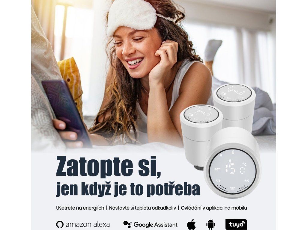 IMMAX NEO Smart termostatická hlaviceProgramovatelná termostatická hlavice na radiátory umožňuje komfortní řízení topení s úsporou energie odkudkoliv na světě pomocí mobilní aplikace IMMAX NEO PRO na platformě TUAY. K dispozici je samozřejmě také možnost lokálního ovládání tlačítky na těle hlavice. Termostat nabízí týdenní program, s možností volby mezi 5+2, 6+1 a 7 dnů x 6 režimů teploty a času, speciální funkce typu prázdninový režim či funkce otevřeného okna a také funkci zámku, která omezuje ovládání přímo z hlavice (vhodné jako dětský zámek nebo do pronajímaných nemovitostí). Naprogramované časové funkce jsou uloženy v hlavici a fungují i při výpadku internetu.