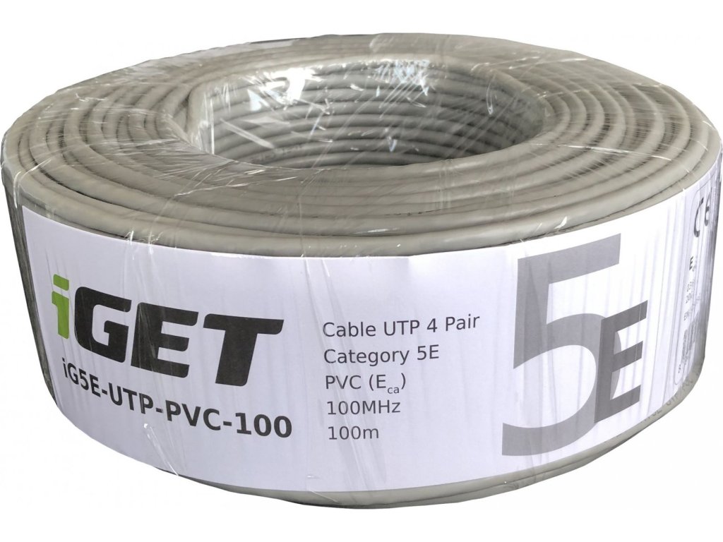 Instalační kabel iGET CAT5E UTP PVC Eca 100m/role, kabel drát, s třídou reakce na oheň Eca