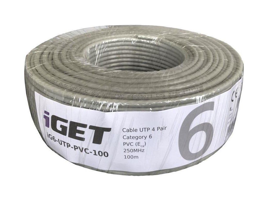 Instalační kabel iGET CAT6 UTP PVC Eca 100m/box, kabel drát, s třídou reakce na oheň Eca