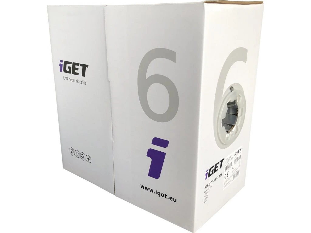 Instalační kabel iGET CAT6 UTP PVC Eca 305m/box, kabel drát, s třídou reakce na oheň Eca