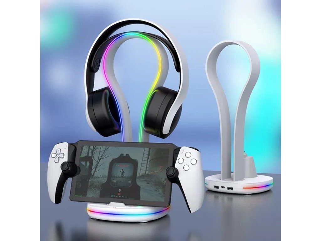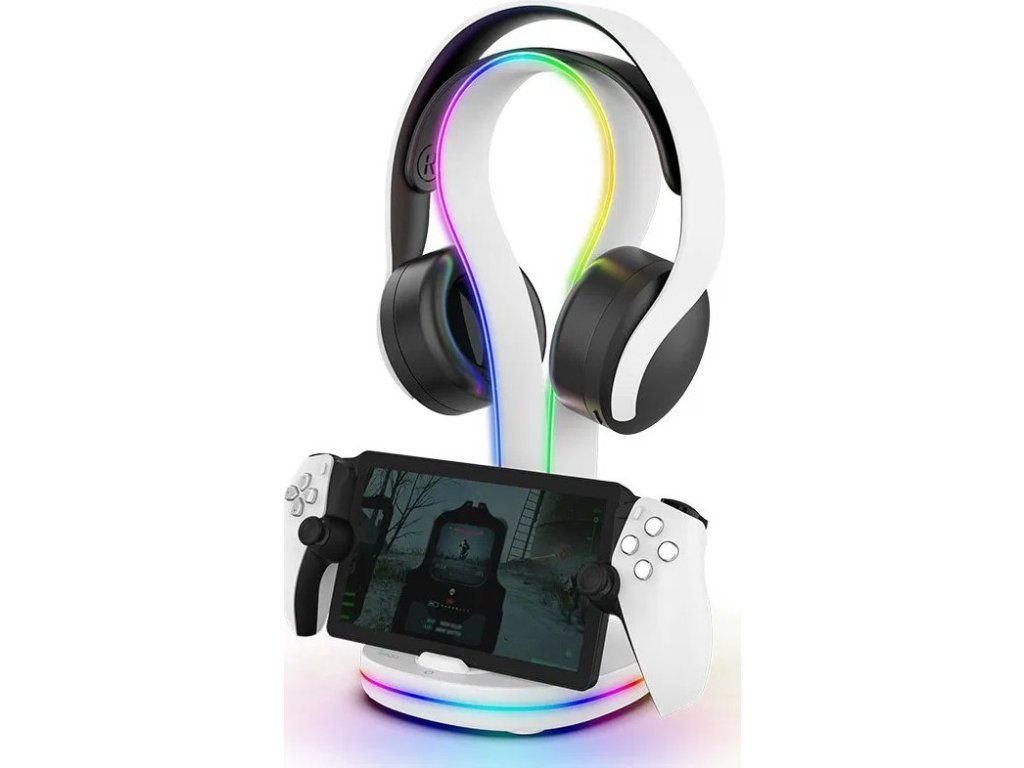 iPega P5P23 Nabíjecí RGB Stojan pro Playstation Portal Remote Player s Držákem na Sluchátka White