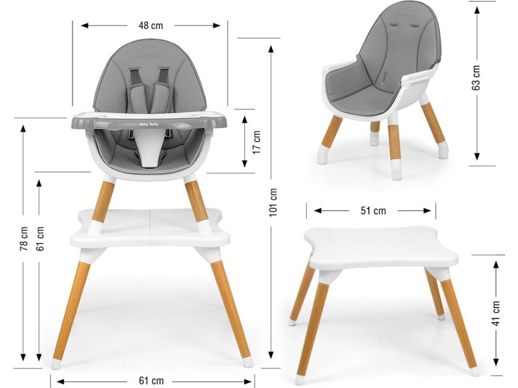 Moderní a stylová dětská jídelní židlička 2v1 Malmo. Je vyrobena z nejkvalitnějších materiálů - kombinuje funkčnost a moderní design. Verze vysoké židle je určena pro děti od 6 měsíců do 36 měsíců nebo při dosažení hmotnosti 15 kg a verze nízké židle plus stůl pro děti od 3 do 6 let nebo při dosažení hmotnosti 25 kg.