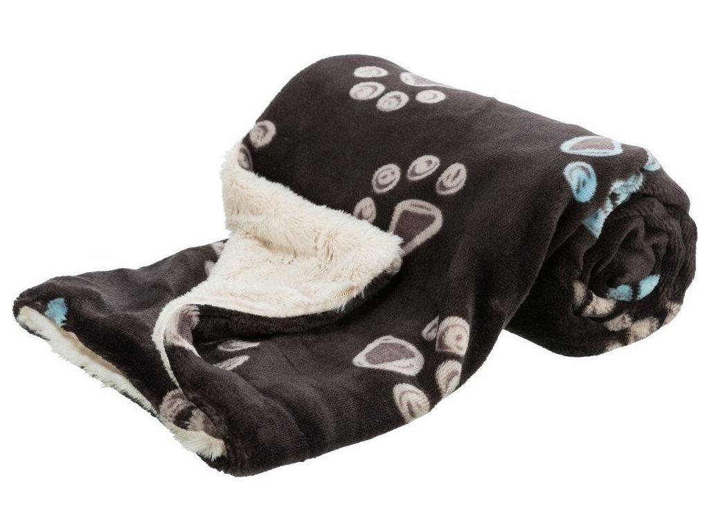 JIMMY plyšová hebká deka oboustranná, taupe-šedá s tlapkami/krémová
