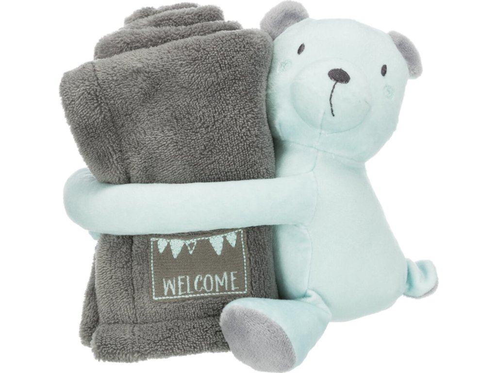 JUNIOR set - deka 75 x 50 cm + plyšový medvídek, šedá/mátová