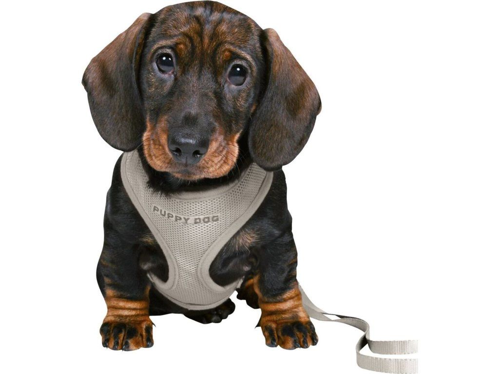 JUNIOR SOFT postroj s vodítkem pro štěňata, světlešedá