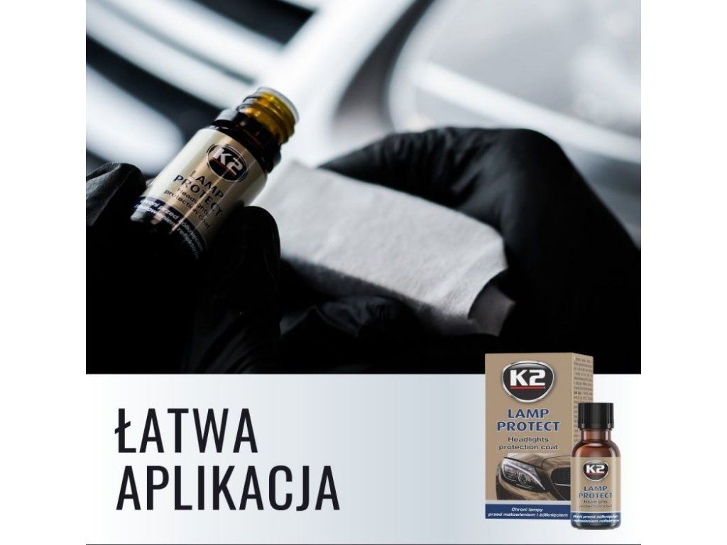 Návod na použití: Povrch světlometů musí být čistý a suchý. Vždy aplikujte ve stínu a na studený povrch. V případě zničených, zažloutlých, matných nebo poškrabaných světlometů je potřeba před aplikací přípravku světlomety ošetřit pomocí pasty K2 LAMP DOCTOR a následně odmastit povrch např. pomocí přípravku K2 T6 KLINET. Protřepte lahvičku a naneste K2 LAMP PPROTECT na utěrku navinutou na aplikátor (nanášecí houbička). Rozetřete po povrchu světlometů a nechte působit cca 5-10 min. Rozleštěte povrch pomocí utěrky z mikrovlákna. Pro maximální účinek počkejte cca 30 min a naneste 2. vrstvu. Pro dosažení maximálního vytvrzení ochrany je ideální automobil neumývat za pomocí jakýchkoli chemických přípravků po dobu 7 dnů.