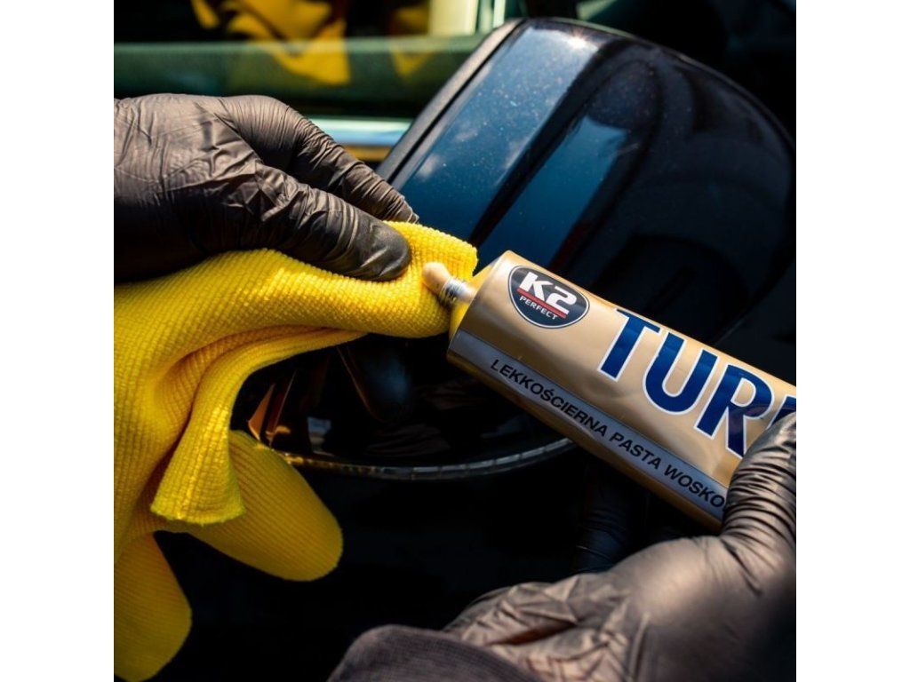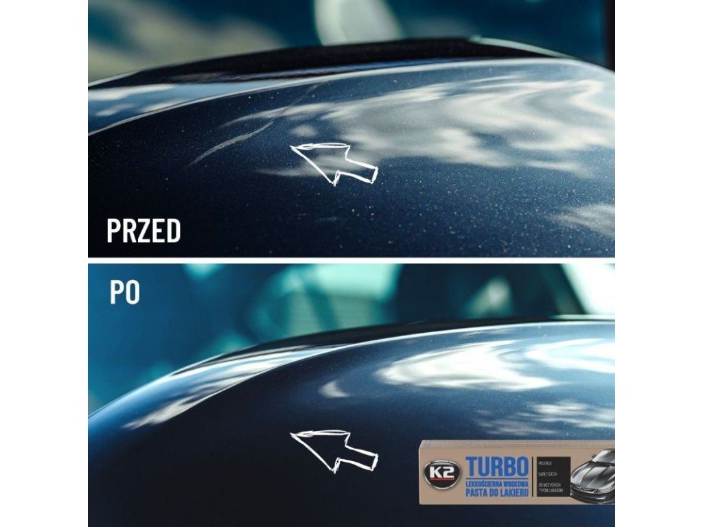 Pasta na karoserii automobilu testovaná miliony zákazníků. Receptura K2 TURBO se speciálními nanočásticemi odstraňuje i ty nejmenší škrábance a dává ještě větší lesk laku.