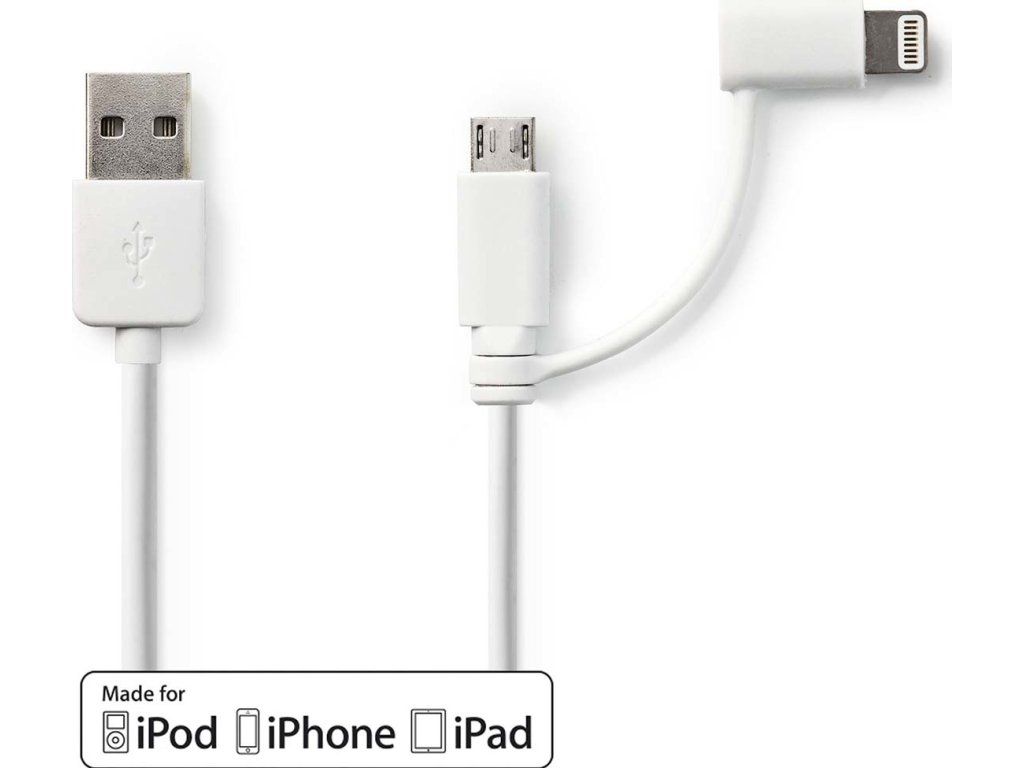 Kabel 2 v 1 | USB 2.0 | USB-A Zástrčka | Apple Lightning 8pinový / USB Micro-B Zástrčka | 480 Mbps | 1.00 m | Poniklované | Kulatý | PVC | Bílá | Plastový Sáček