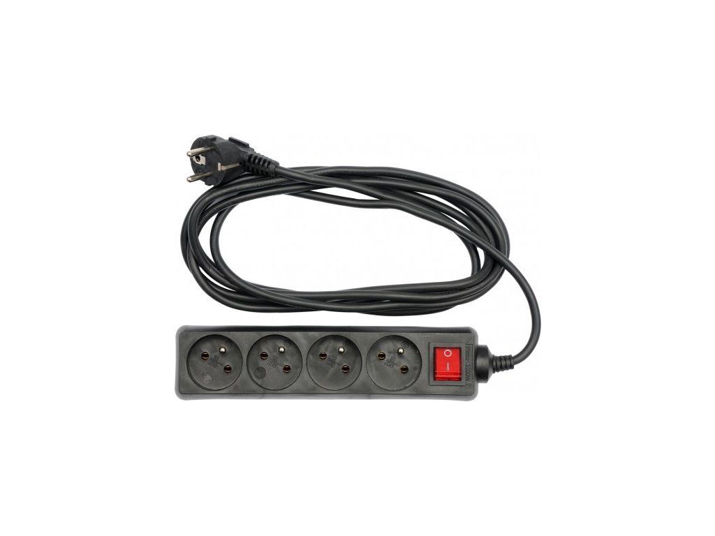 Kabel prodlužovací 5 m vypínač 4 zásuvky