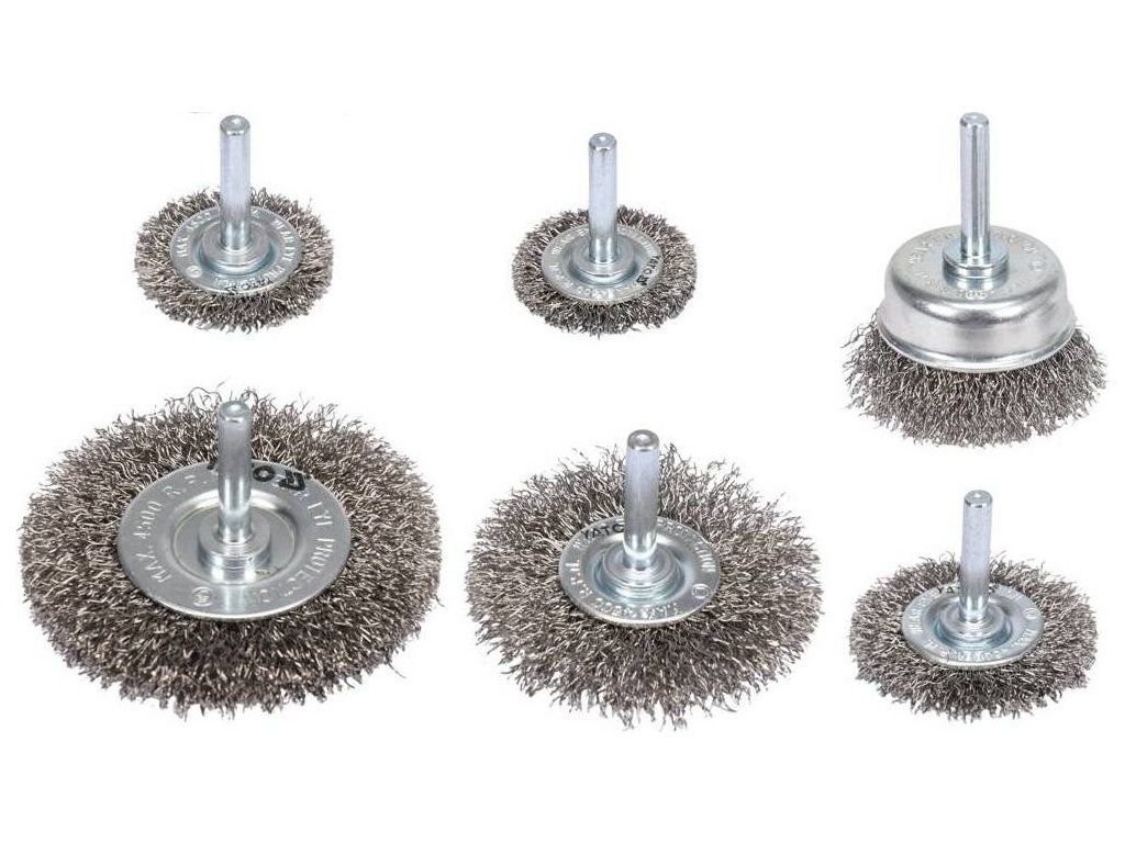 Kartáče drátěné boční s nástavcem do vrtačky INOX sada 6 ks