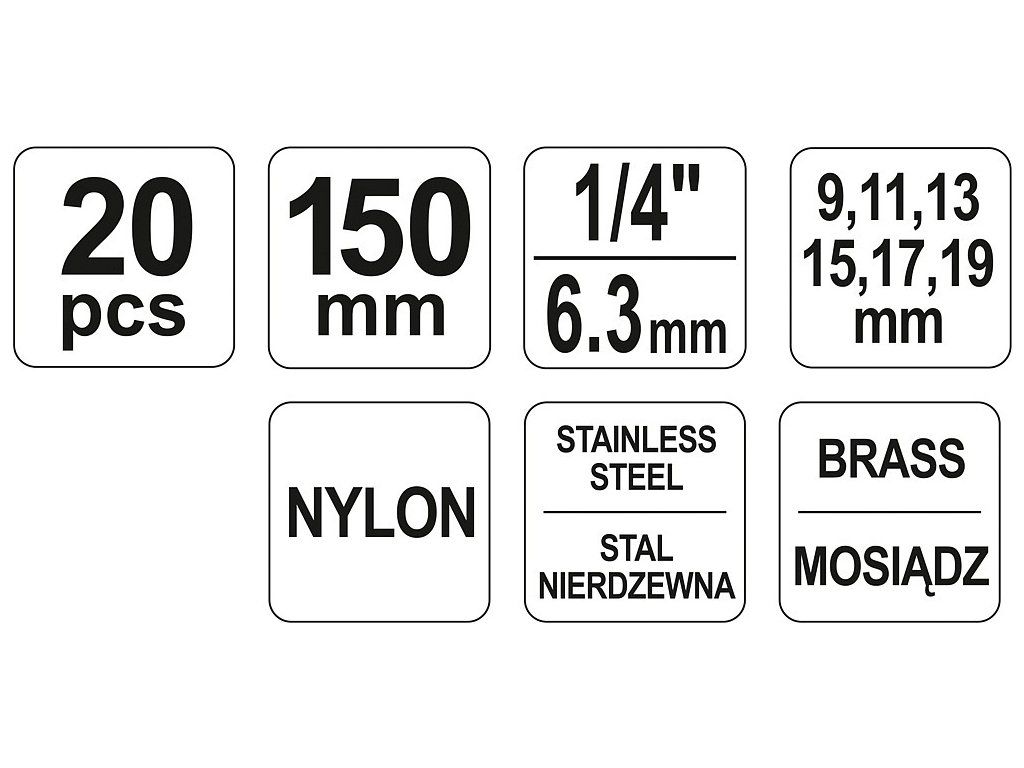 Sada obsahuje 18 kartáčů různé velikosti v provedení nylon, mosaz a CrV ocel.