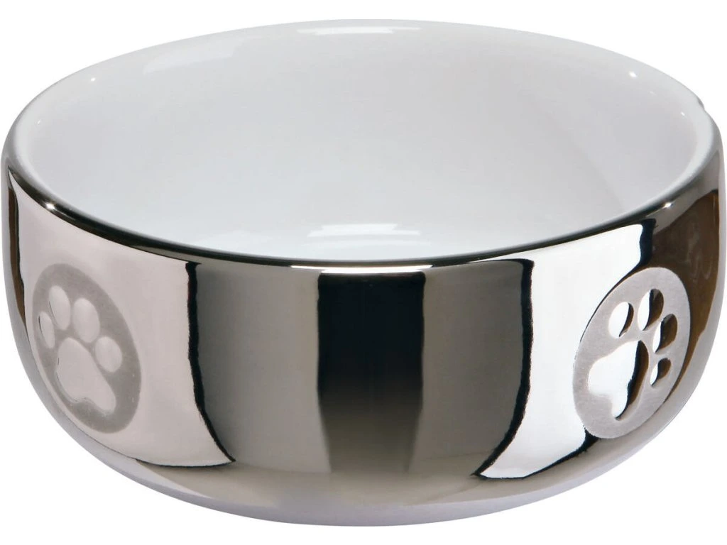 Keramická miska pro kočky s packami 0,3 l/11cm stříbrno/bílá