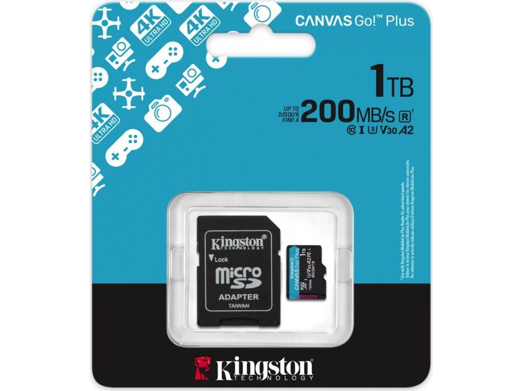 Kingston Canvas Go Plus A2/Micro SDXC/1TB/UHS-I U3 / Class 10/+ Adaptér