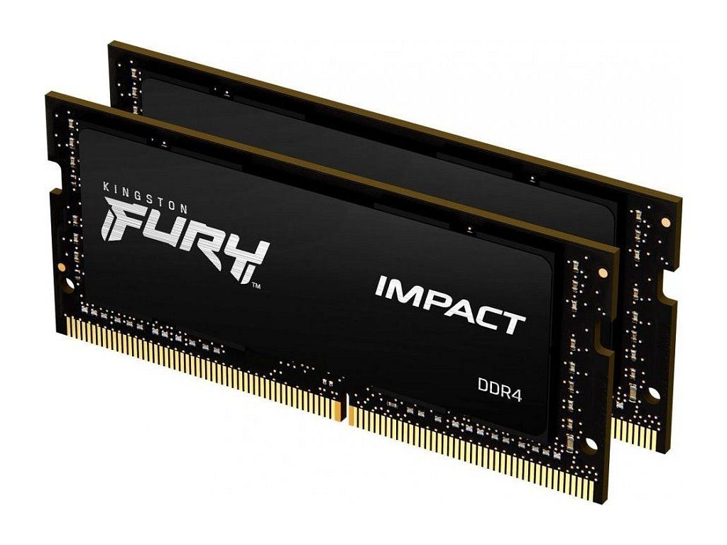 Kingston Fury Impact 64 GBOperační paměť typu DDR4 pro notebooky o velikosti 64 GB. Dosahuje datového přenosu 3200 MT/s. Balení obsahuje dva kusy 32 GB paměti.