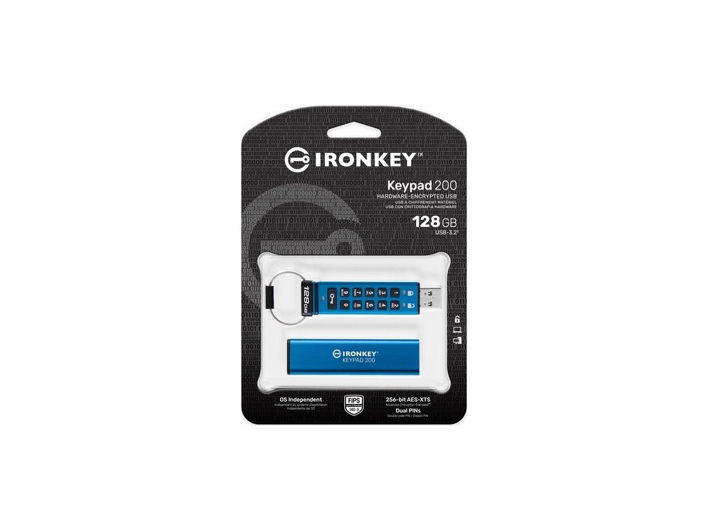 Kingston IronKey Keypad 200/128GB/USB 3.2/USB-A/Modrá