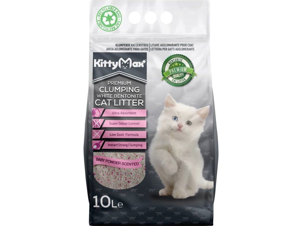 KITTYMAX hrudkující, bezprašný bílý bentonit BABY POWDER 10 l