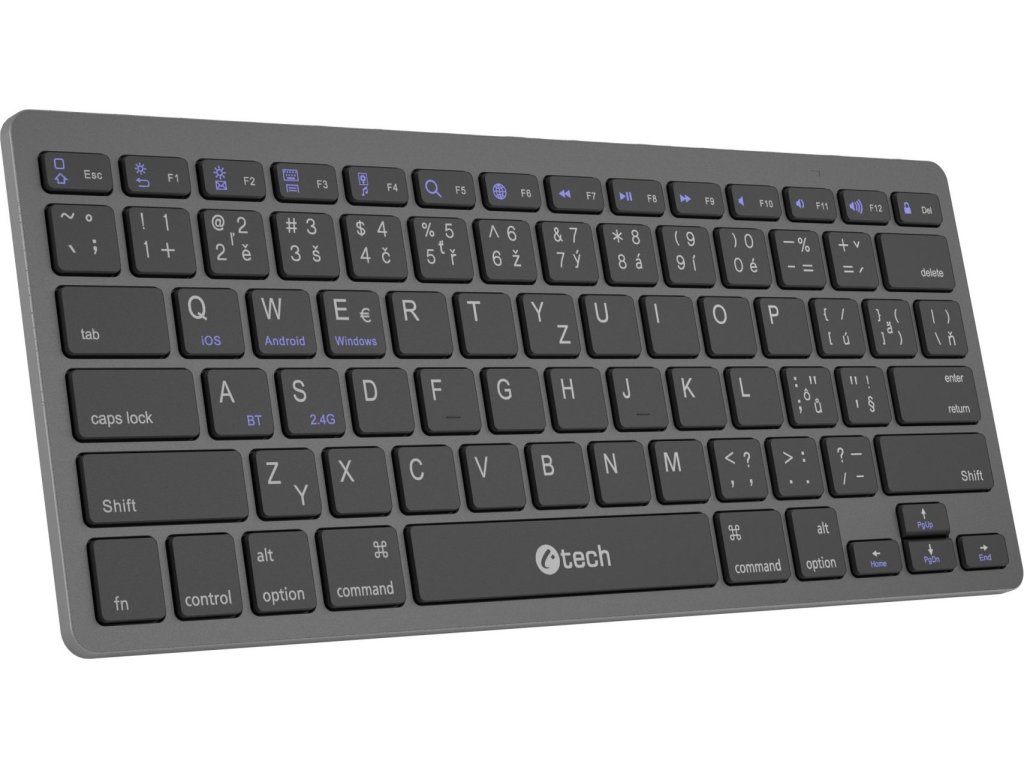 Bezdrátová klávesnice C-TECH KB-120S je navržena s důrazem na moderní styl, maximální pohodlí při psaní a širokou kompatibilitu napříč zařízeními. Díky svému tenkému (thin) designu působí elegantně a minimalisticky, zároveň je však velmi praktická jak pro práci u stolu, tak pro mobilní použití s notebookem, tabletem či chytrým telefonem.
