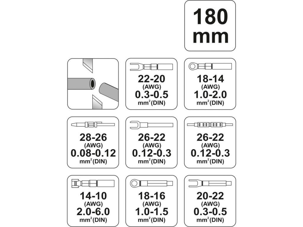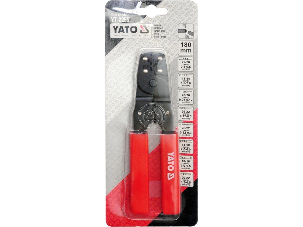 Kleště YT-2256 pro krimpování tří typů konektorů, se zčernalým povrchem, který chrání před korozí, a s plastovými kryty rukojetí.