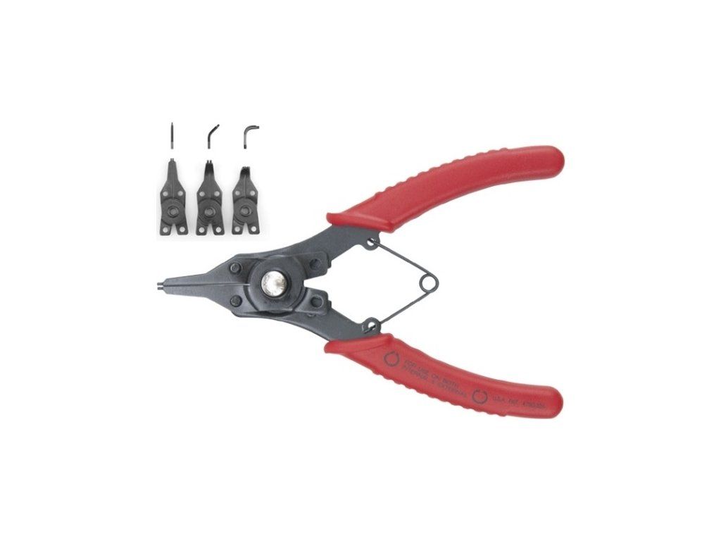 Kleště na segerovy pojistky, délka 160 mm se čtyřmi vyměnitelnými čelistmi.