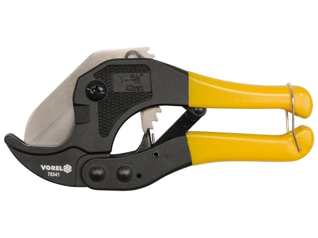 Instalatérské nůžky na dělení plastových trubek s kapacitou do průměru 42 mm.