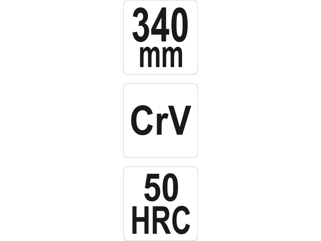 Zhotovení z odolné CrV oceli délky 340 mm, se zoubkovitými čelistmi s tvrdostí 50HRC.