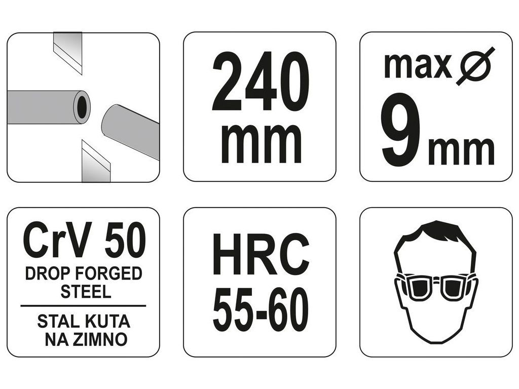 Zhotovené z CrV-50 oceli 55-60 HRC. Oplastované rukpojeti zabezpečují míru komfortu při práci.