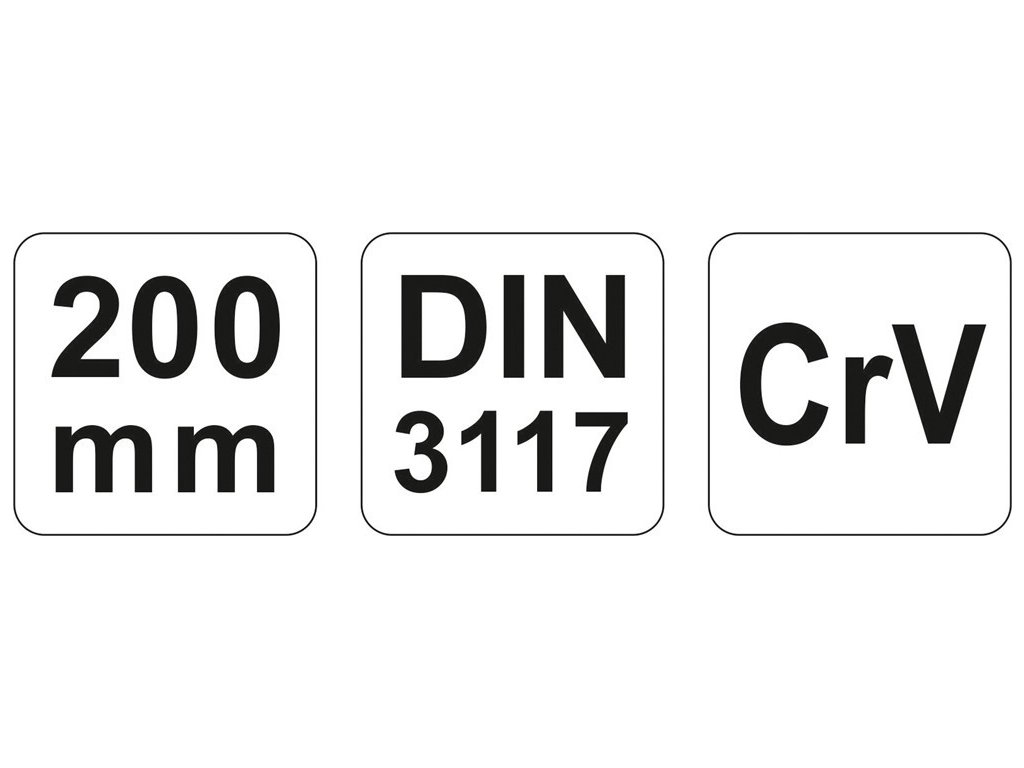 Klíč nastavitelný s rukojetí, délky 200mm, vyroben z kvalitní chromvanadiové slitiny oceli CrV s frézovanými čelistmi s rozsahem rozevření max. 30mm.Ovládací matice s lehkým chodem zabraňuje samovolnému povolení a usnadňuje opětovné rozevření čelistí. DIN 3117