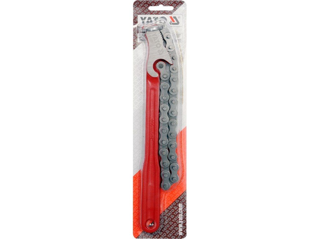 Řetězový klíč na trubky, olejové filtry automobilů a další součásti válcového průřezu do průměru 100 mm.