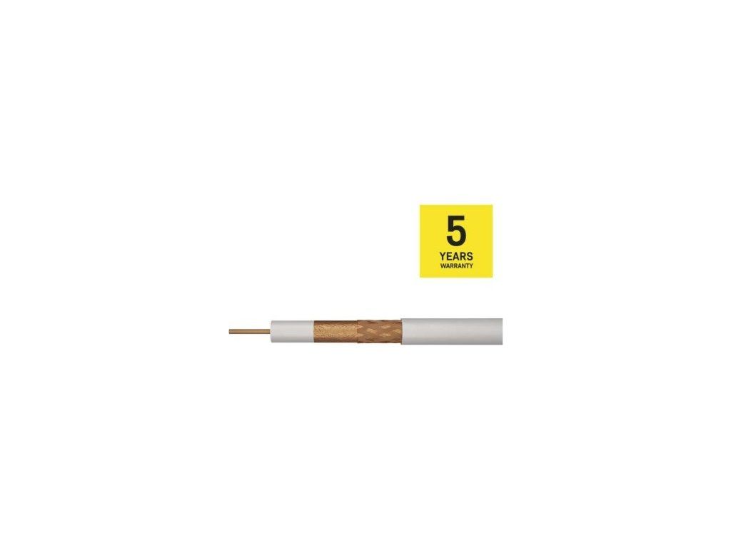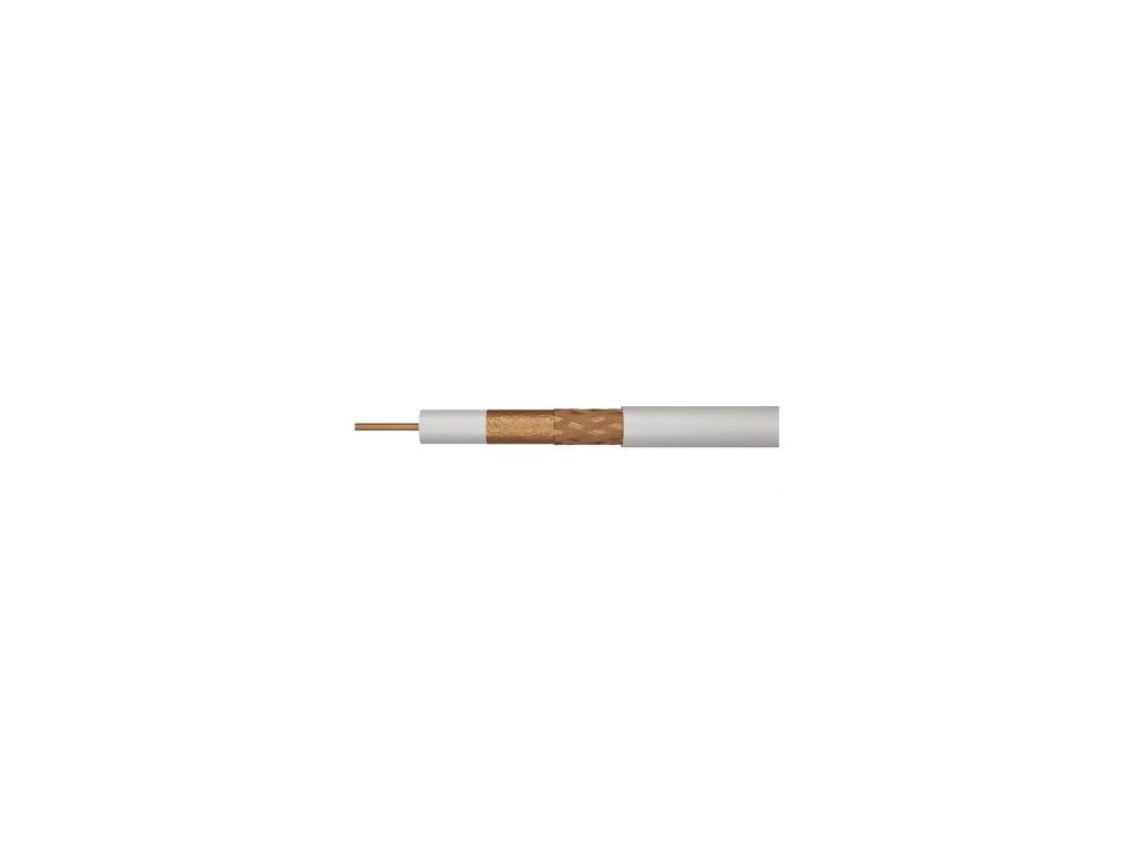 Univerzální koaxiální kabel typu RG6 se středovým vodičem z čisté mědi BC a dvojnásobným stíněním z hliníkového drátu Al, bílá barva.Kabel je určen pro všechny aplikace přenosů, TV a SAT signálů v nenáročném prostředí. Díky použitému materiálu středového vodiče a opletení je kabel mimořádně odolný vůči povětrnostním podmínkám, vlhkosti a korozi.