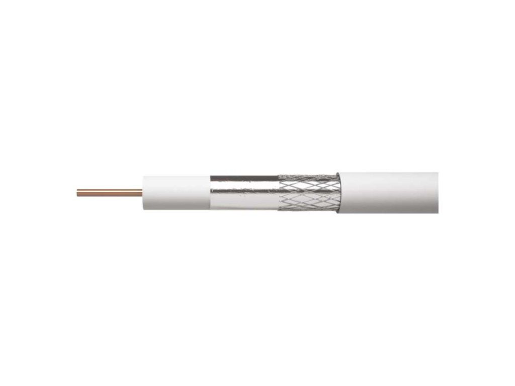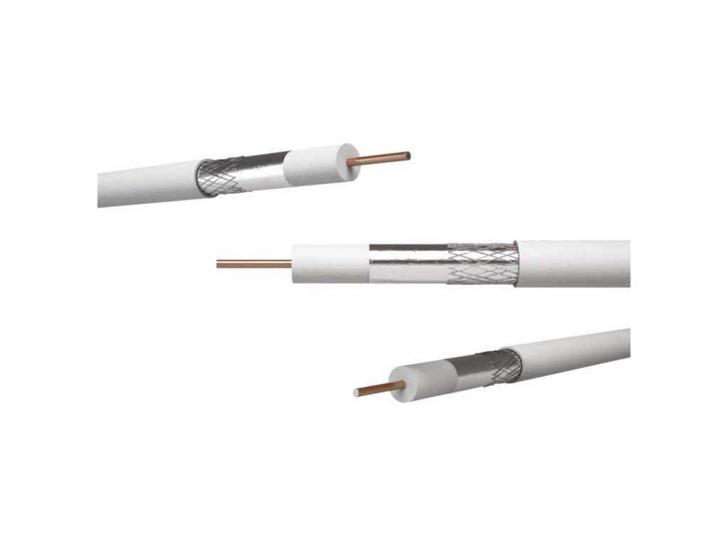 Univerzální koaxiální kabel typu RG6 se středovým vodičem z CCS a dvojnásobným stíněním z hliníkového drátu Al, bílá barva. Kabel je určen pro všechny aplikace přenosů, TV a SAT signálů v nenáročném prostředí.Díky použitému materiálu středového vodiče a opletení je kabel mimořádně odolný vůči povětrnostním podmínkám, vlhkosti a korozi.