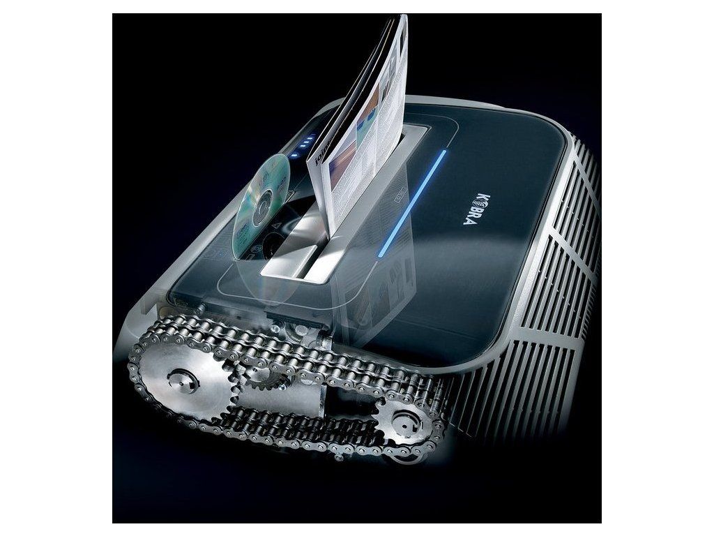 Špičková skartovačka s dotykovým panelem, na kterém se všechny ovládací prvky aktivují pouhým dotykem. Vysoce přesná konstrukce uhlíkově kalených řezných nožů umožňuje vysoké zatížení při nízké spotřebě energie. Je vybavena motorem s 24hodinovým nepřetržitým provozem bez přehřátí a robustním řetězovým převodem.
