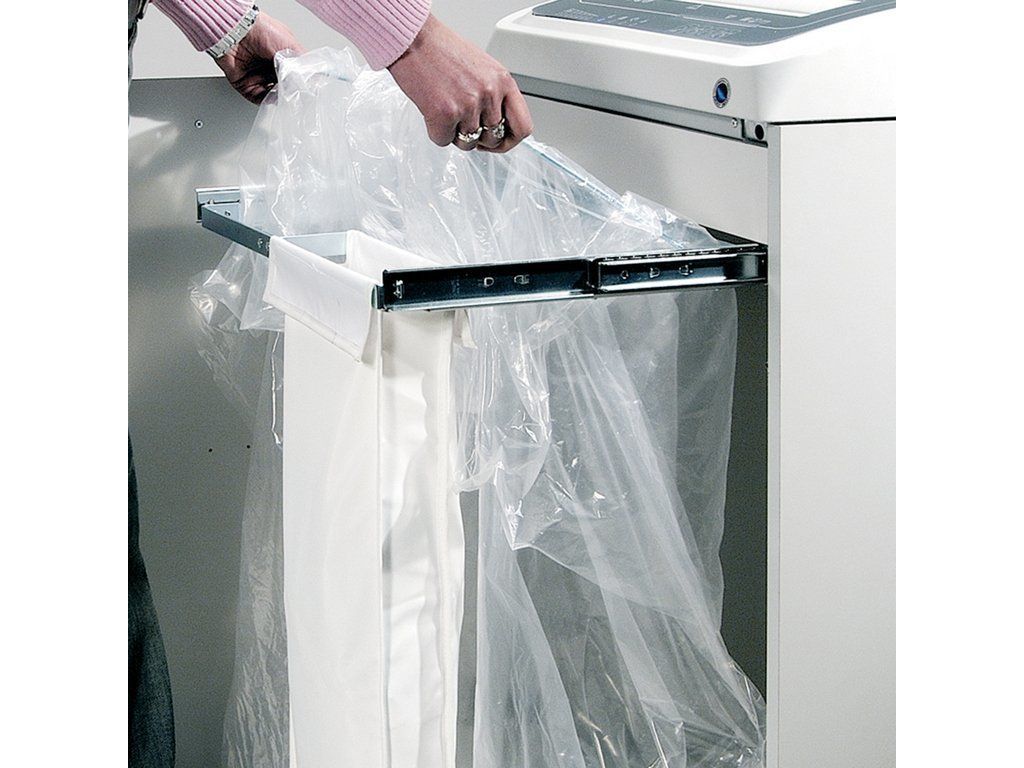 Dvě sady řezných nožů umožňují samostatné vkládání a skartování papíru a CD/DVD/kreditních karet. Dvě integrované a vyjímatelné odpadní nádoby zajišťují oddělení skartovaného papíru od plastových útržků.