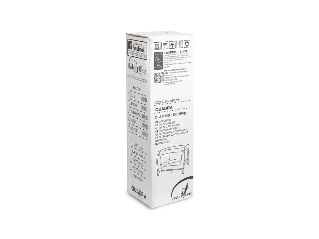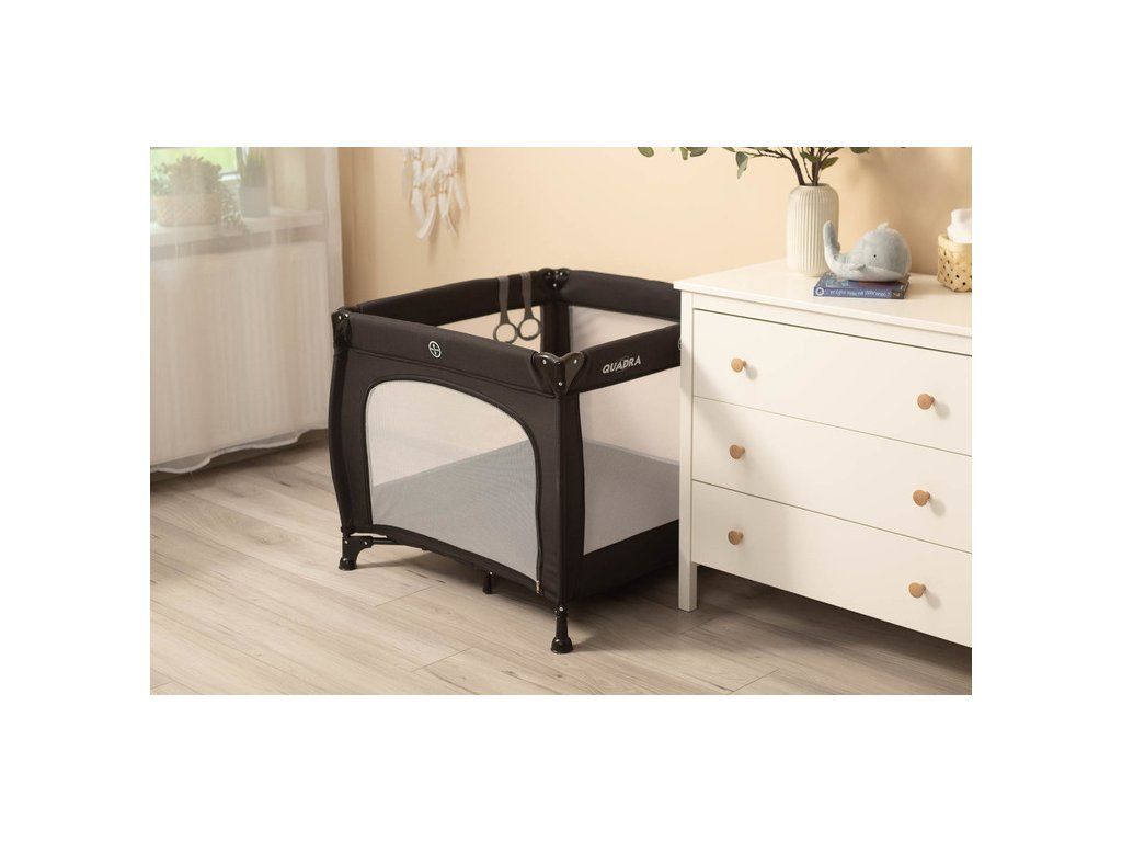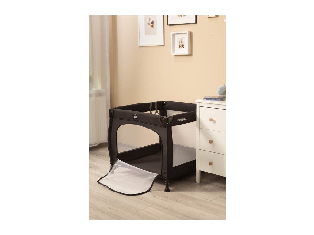 Quadra to lekki oraz praktyczny kojec kwadratowy. Wykonany z tkaniny materiałowej oraz wysokiej jakości plastiku, dzięki czemu jest trwały. Wyposażony w matę, drzwiczki na zamek oraz uchwyty do nauki wstawania. Quadra sprawdza się idealnie jako miejsce zabaw i odpoczynku w domu oraz w podróży. Łatwe składanie oraz poręczna torba ułatwi CI transport kojca.