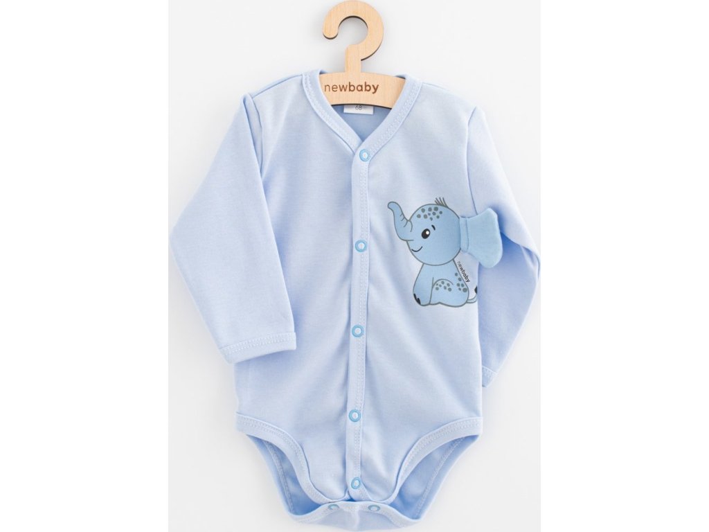 Kojenecké celorozepínací body s dlouhým rukávem New Baby Happy Elephant blue 56 (0-3m)