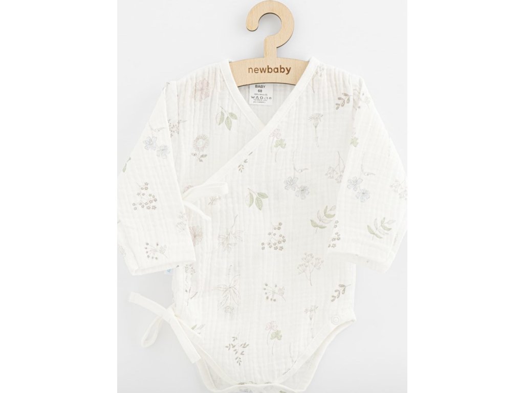 Krásné lehounké body s dlouhým rukávem české značky New Baby Zoe. Mušelínové zavinovací body s dlouhým rukávem celopotištěné květinovým vzorem ocení miminka díky kvalitnímu materiálu. Zapínání na boku na cvočky a mezi nožičkama na cvočky. Složení: 100% bavlna. Mušelín je jedna z nejčistších, nejjednodušších a nejjemnějších tkanin na světě. Jemně tkaný prodyšný materiál je tak dokonalý, že si jej zamilují děti po celém světě. Lehká struktura umožňuje mušelínu „dýchat“ a zajišťuje dostatečnou cirkulaci vzduchu, čímž snižuje riziko přehřátí. Tato vlastnost pomáhá udržet Vaše dítě v pohodlí, bezpečí a rodiče v klidu. Mušelín je velmi odolný a to tak, že bez problémů zvládá opakované praní a postupem času je lehčí a jemnější.