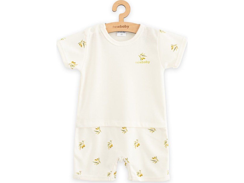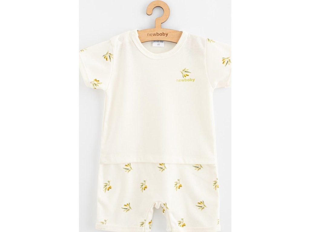 Stylový letní overal s krátkým rukávem české značky New Baby Olivy. Zavinovací overálek s krátkým rukávem je celopotištěný krásnými olivami. Má praktické zavazování na boku na tkaničky, z vnitřní strany na cvoček a mezi nožičkama na cvočky což usnadní oblékání a přebalování. Na nohavičkách jsou jemné gumičky, které ale netlačí na nožičkách. Super stylový letní overálek rozzáří každé miminko
