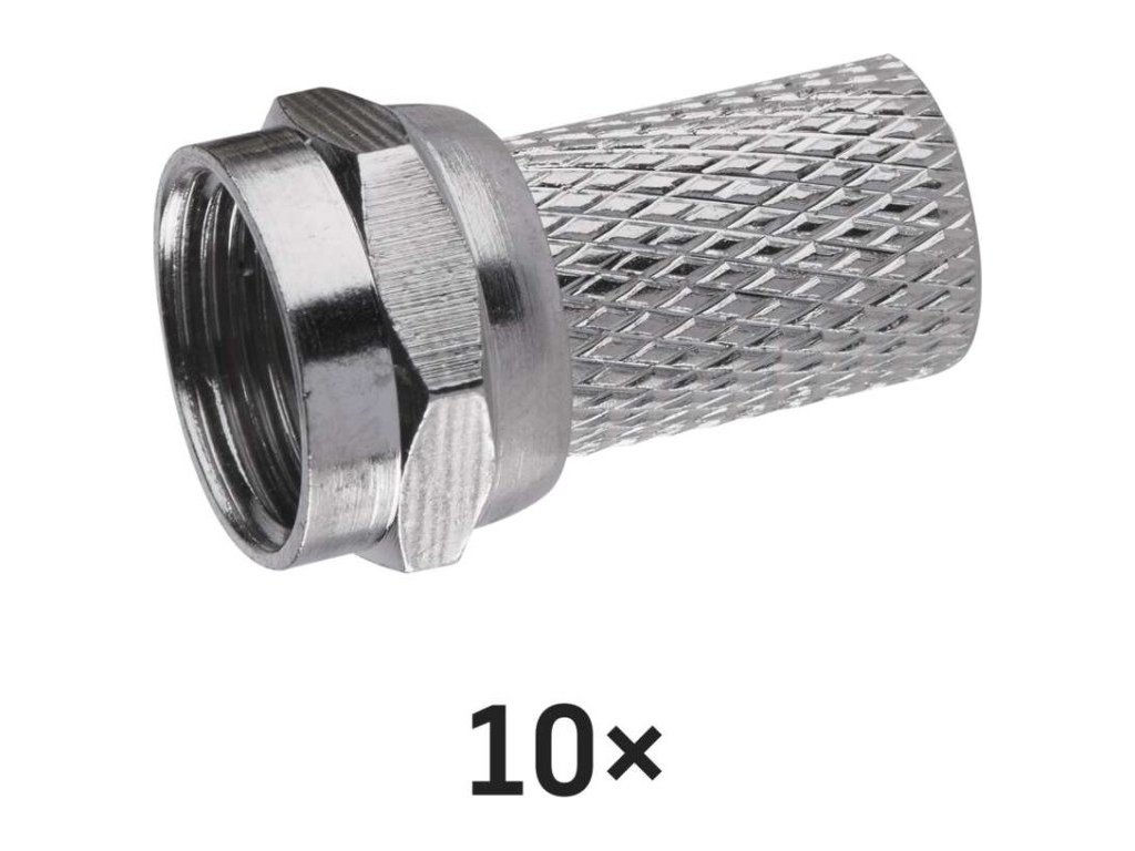 F-konektor vidlice určený k napojení na koaxiální kabel CB 50,100. F-konektor má šroubovací vidlici.