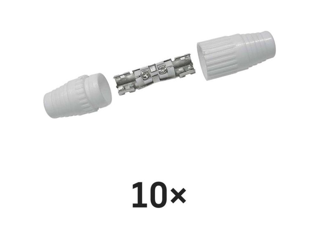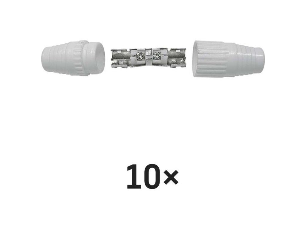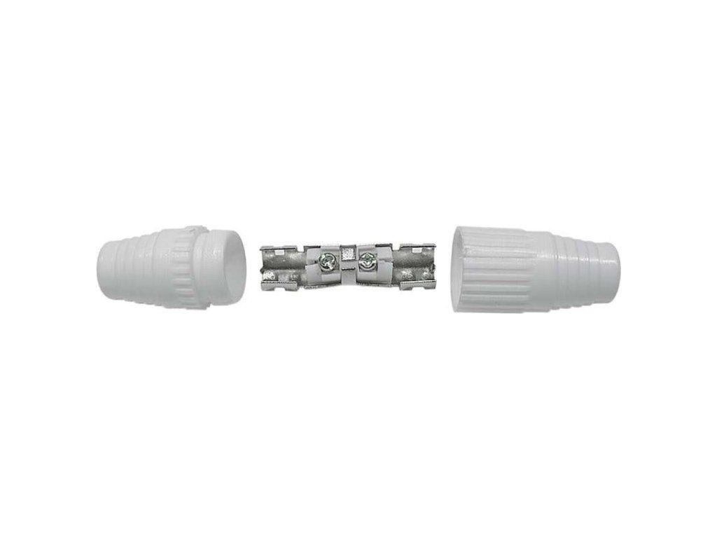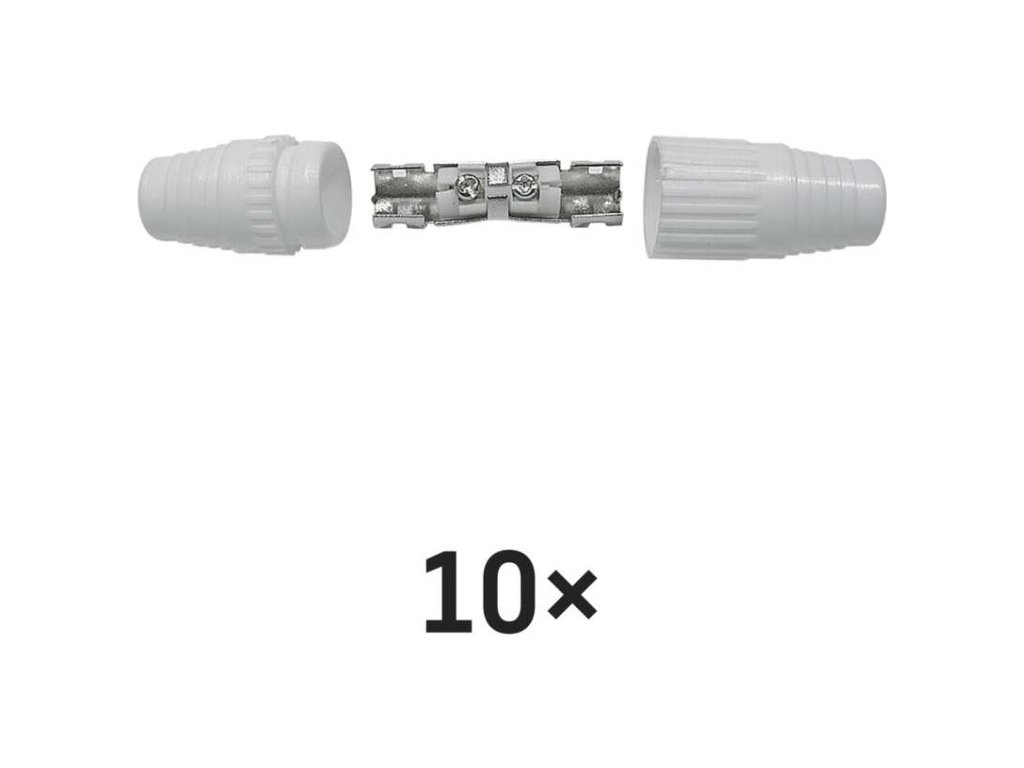 IEC spojka určená k nadstavení koaxiálního kabelu a má bílou barvu. Spojka se prodává po 10 ks.