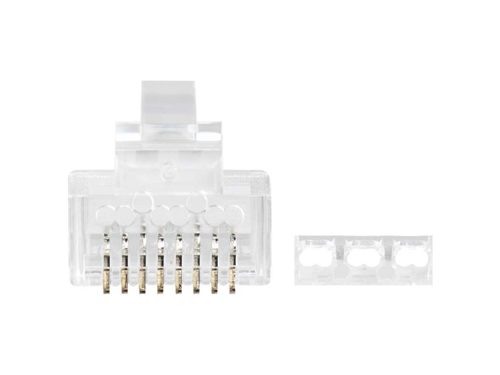 Nestíněný konektor RJ45 8p8c. Pro vodič drát, kulatý kabel. Neskládaný.
