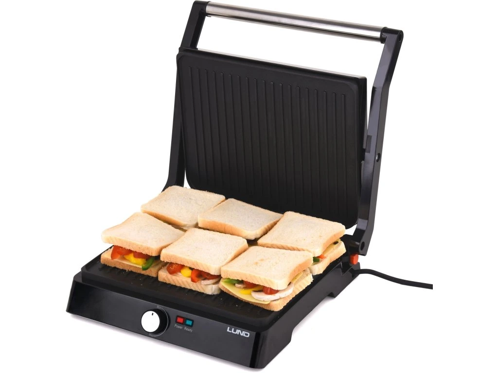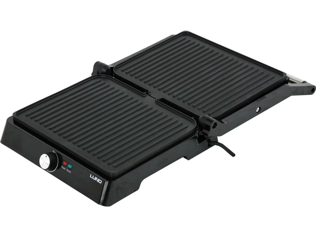 Výkonný elektrický gril určený pro rychlou přípravu masa, ryb, zeleniny a toastů. Seřizovací funkce topných desek umožňuje jejich přizpůsobení výšce opékaných výrobků. Další výhodou, která zdvojnásobuje grilovací plochu, je možnost rozložení na 180 stupňů.